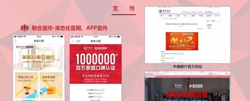 為全面落實和加深中國銀行與星藝裝飾集團在家裝家居金融方面合作,實現(xiàn)互利共贏,中國銀行聯(lián)合星藝裝飾針對具有家裝、家居需求的優(yōu)質(zhì)客戶推出家裝分期業(yè)務合作。為此,中國銀行為星藝裝飾推出客戶私屬定制家裝分期業(yè)務,以便于星藝客戶用于支付家庭裝修及家具、家電等相關衍生消費需求,并在約定的時間內(nèi)采取分期償還方式按期償還裝修貸款。