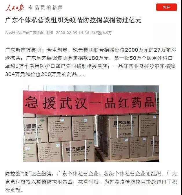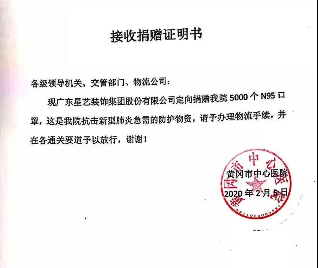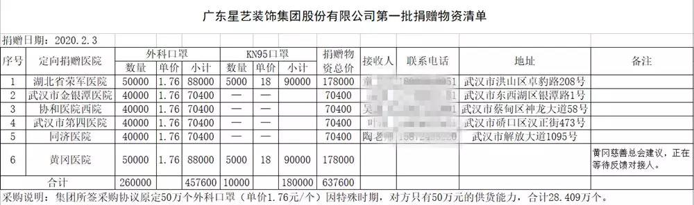 文中指出:“廣東星藝裝飾集團(tuán)募集捐款180萬(wàn)元,第一批50萬(wàn)個(gè)醫(yī)用外科口罩和1萬(wàn)個(gè)醫(yī)用防護(hù)口罩已定向捐助相關(guān)醫(yī)院……”