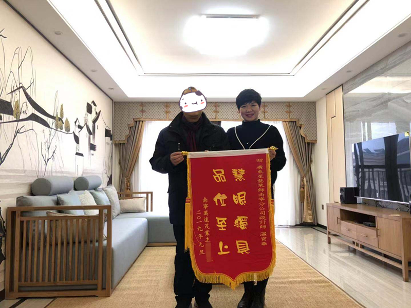 2019年元旦,星藝裝飾設(shè)計師溫寶華在萬達(dá)茂業(yè)主賀先生家中接受表彰錦旗,公司已有多個設(shè)計師受到業(yè)主的肯定和褒獎。錦旗內(nèi)容:品味至上 慧眼獨具,這不是星藝裝飾的第一面錦旗,但也肯定不是最后一面的錦旗,紅艷艷的錦旗是星藝裝飾始終堅持顧客至上的服務(wù)理念的最好的回報,也是公司不斷發(fā)展、不斷裝的強勁動力,我們將繼續(xù)堅持“把裝修交給我們,您放心上班去”的宗旨,全新全新為每一位客戶服務(wù),打造出更多的“放心工程”、“品質(zhì)工程”,來回報我們的客戶。