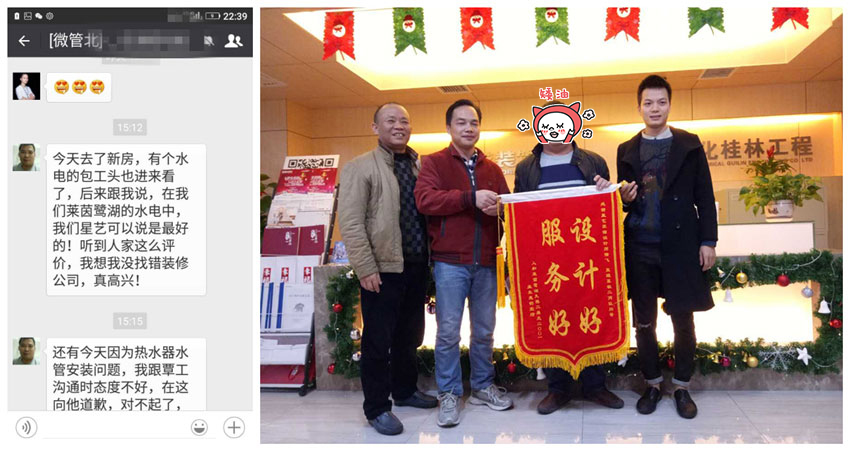 雖然幾個月的裝修過程中有些碰撞,但是溝通是解決問題的唯一途徑,什么事情都能大事化小,小事化了,為了能讓業(yè)主住得舒心,實(shí)現(xiàn)當(dāng)初我們許下的諾言,同時也感謝業(yè)主對我公司的信任與理解!