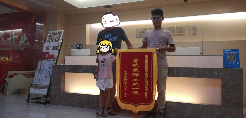 北湖北路業(yè)主送來錦旗,星藝裝飾項目經(jīng)理梁勁樂 接受錦旗,錦旗內(nèi)容:星藝裝飾工藝一流
