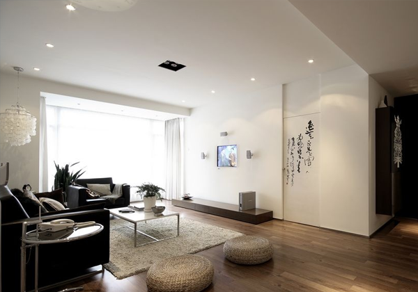 隱形門電視墻呈現(xiàn)出的方式有很多,不同的裝修材料其形成的裝修風(fēng)格也各不一樣。一般來說,成功的隱形門電視墻設(shè)計(jì)會較常用到石膏板,壁紙或者硅藻泥材料來作為墻面材料利用,這些裝修輔料或是材料具有隱形統(tǒng)一的特點(diǎn),用在背景墻上,可以更好的將隱形門“隱藏”起來,另外,除了關(guān)注墻面、隱形門材料之外,墻壁上的把手或門鎖材料也要注意,墻面墻的材料搭配要與整個家裝風(fēng)格相契合,比如上圖的客廳裝修風(fēng)格為簡約現(xiàn)代,那么其電視墻用白色涂料作為墻壁色彩,為了使得隱形門電視墻略顯豐富一些,在隱形門上搭配了毛筆字來裝飾,這樣一來,原來單調(diào)的隱形門電視墻增添些許內(nèi)涵,看上去文化韻味十足。