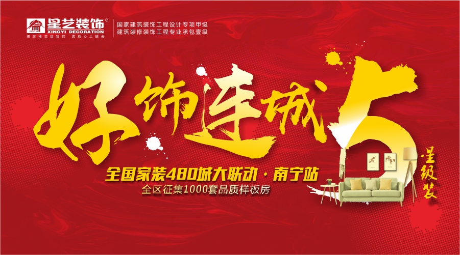 2014年星藝裝飾“好飾連城”全國480城大聯(lián)動首屆的成功舉辦,不間斷延續(xù)至今,一年一屆的好飾上演,讓星藝紅色旋風吹遍八桂大地。金九銀十的豐收季節(jié),“好飾連城5”再次席卷全國,多家銀行家裝分期助力,幾十家聯(lián)盟一線建材品牌廠價助陣,集團斥資讓利,共同打造一場品質(zhì)家裝盛宴。