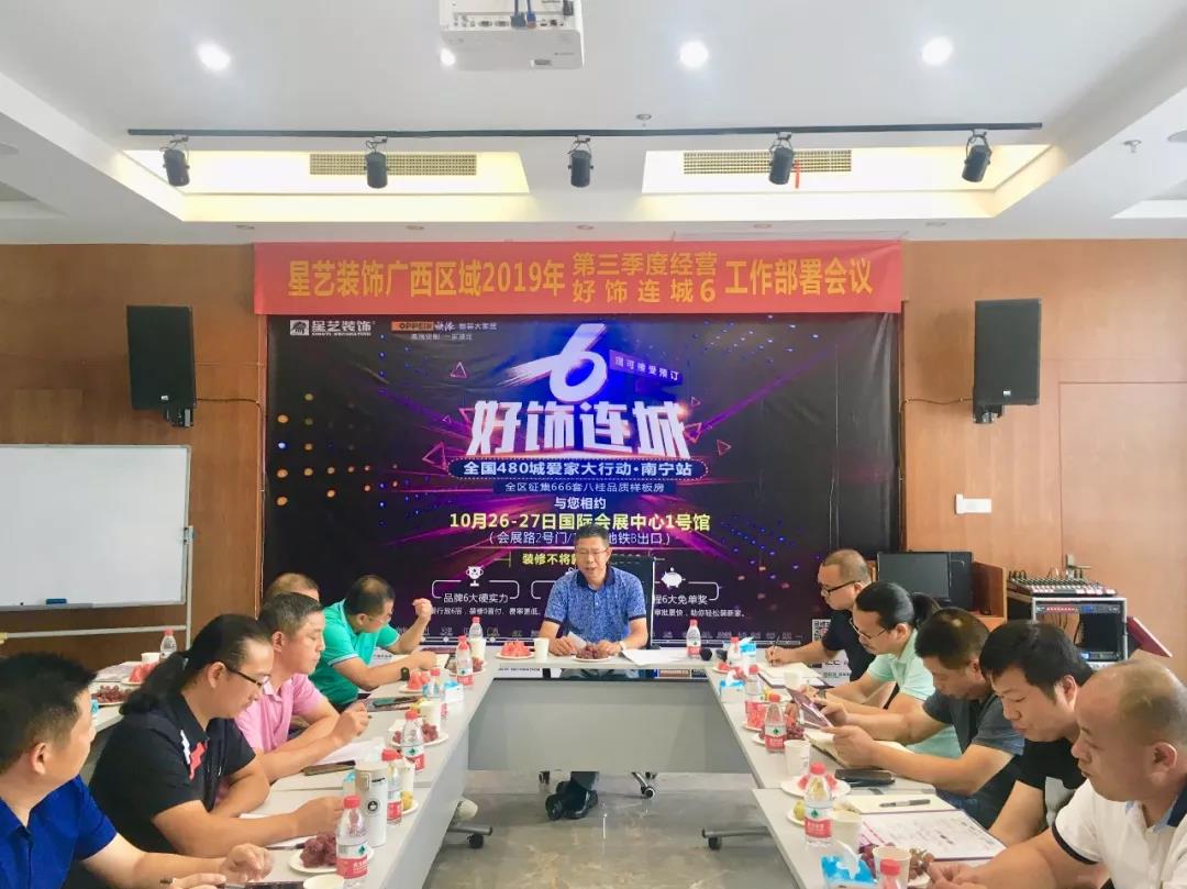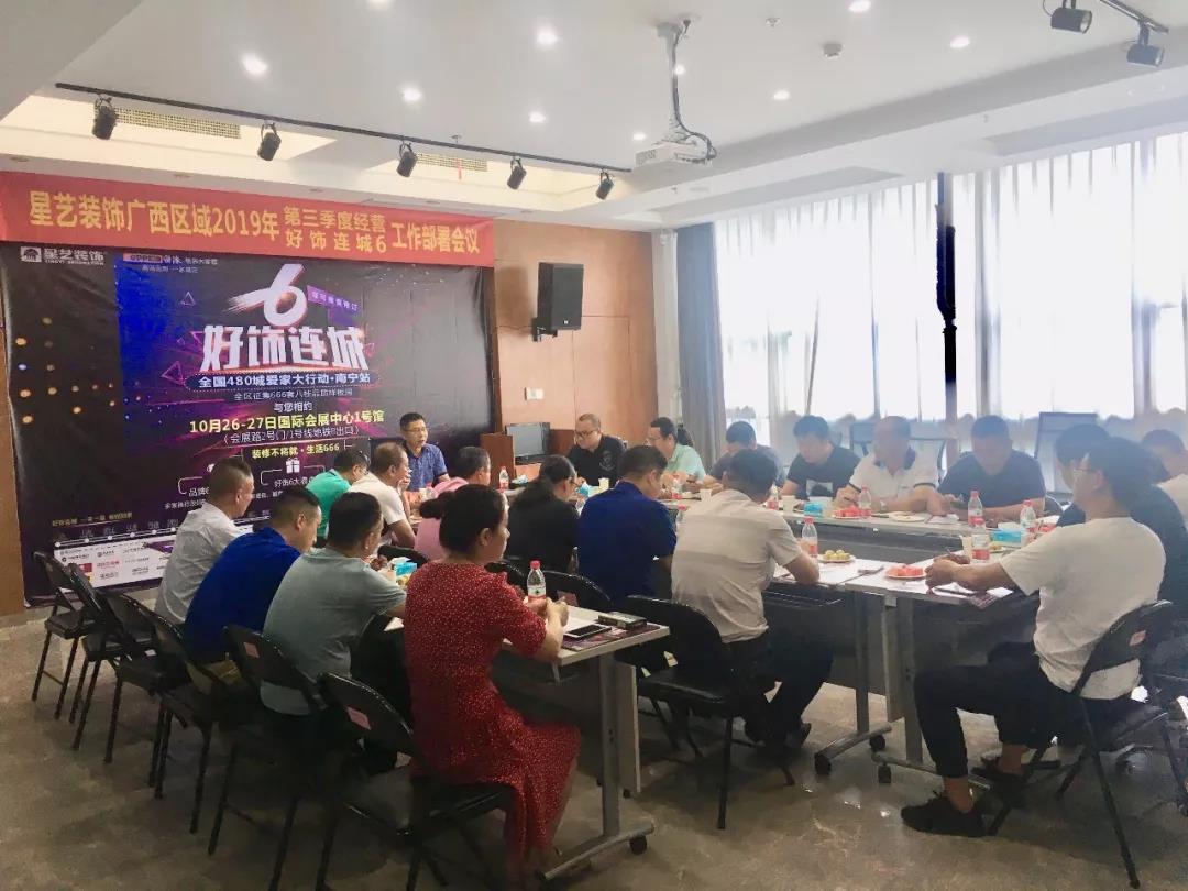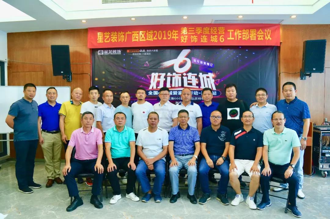 2019年9月2日,廣東星藝裝飾集團(tuán)廣西區(qū)域2019年“好飾連城6”工作部署會(huì)議在星藝廣西總部匯東國際會(huì)議室成功召開。本次會(huì)議由集團(tuán)領(lǐng)導(dǎo)周曉霖、集團(tuán)決策委員會(huì)成員、廣西區(qū)域設(shè)計(jì)總監(jiān)徐橘、南寧區(qū)域總經(jīng)理周平生、貴港區(qū)域經(jīng)理劉英華、北部灣區(qū)域張鄭承以及廣西各分公司30余位經(jīng)理總監(jiān)參加;會(huì)議主旨圍繞正在火熱進(jìn)行中的“好飾連城6”進(jìn)行探討,由集團(tuán)領(lǐng)導(dǎo)周曉霖周總主持會(huì)議。