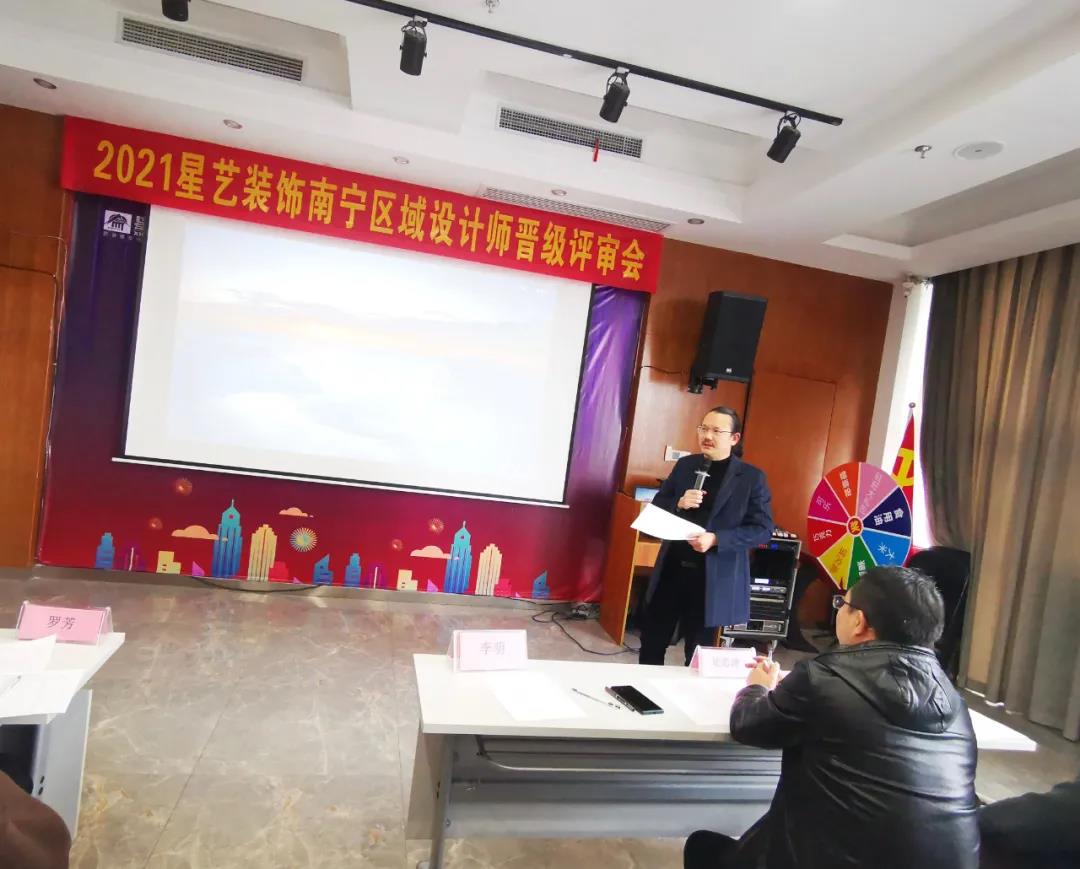 評審會開始,星藝南寧區(qū)域設(shè)計總監(jiān)李明在現(xiàn)場宣讀了評審的要求,并表示星藝裝飾一直以來堅持以自主培養(yǎng)為核心“老帶新”發(fā)展計劃,切實做好新設(shè)計師的培養(yǎng)工作,為公司中長期發(fā)展注入新生力量。