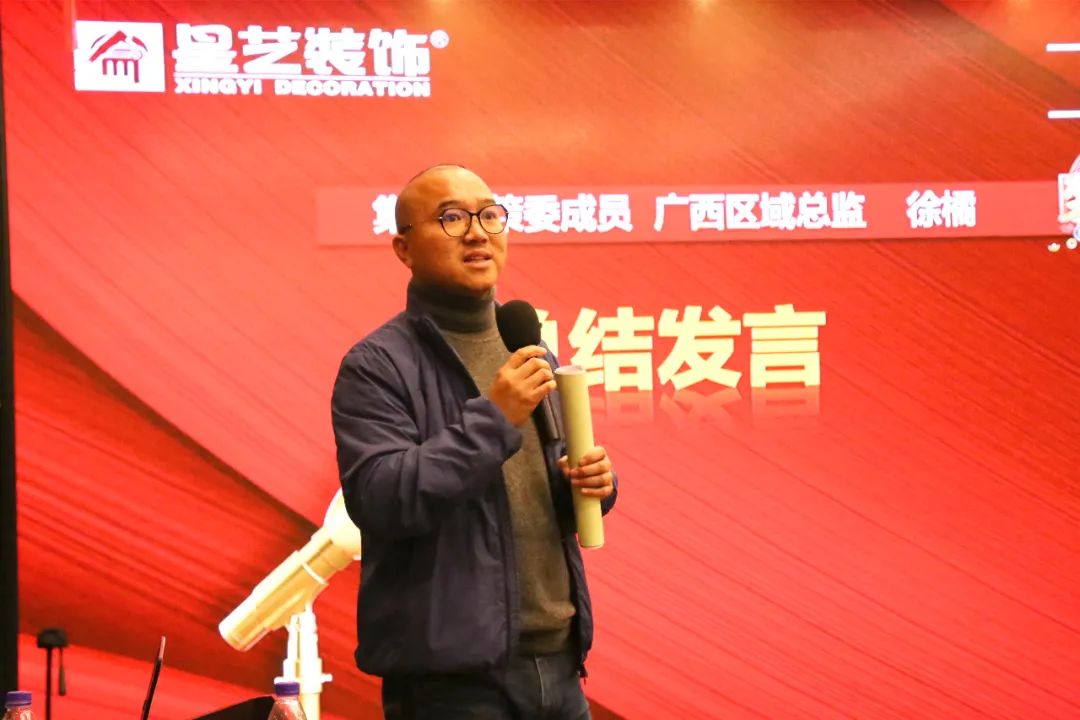 最后,集團決策委成員、廣西區(qū)域設計總監(jiān)徐橘做會議總結,徐總先是以南寧裝修市場形勢做了簡要的分享,并結合自己去外地市場考察,見到一些新的東西,分享到“因為市場在變化,行業(yè)在變化,不管是工程部也好,營銷部、設計部也好,相互之間一定要懂得總結和復盤?!蓖ㄟ^慢慢地去做一些市場的復盤,去解決細部節(jié)點的問題,保持活躍性,不斷調整自己的模式,從而打造出企業(yè)的共同目標。