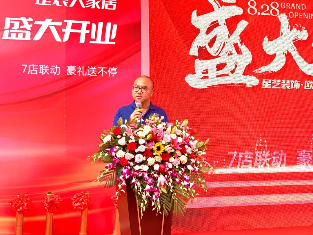 隨后,歐派集團(tuán)整裝大家居經(jīng)銷部總監(jiān)黃亮亮黃總上臺(tái)致辭,黃總表示很榮幸今天能被邀請(qǐng)參加如此盛大的開業(yè)儀式,2018年,歐派率先開創(chuàng)“整裝賦能”的整裝大家居模式,是行業(yè)里面第一家提出大家居概念的品牌,攜手當(dāng)?shù)貙?shí)力最強(qiáng)的星藝裝飾相互賦能,為用戶提供一站式從設(shè)計(jì)到落地的整裝最優(yōu)模式,真正的為客戶實(shí)現(xiàn)所見即所得的家裝服務(wù),也是未來最具性價(jià)比的趨勢(shì), 因此暨此開業(yè)盛事,預(yù)祝星藝裝飾 · 歐派整裝大家居生意興隆。