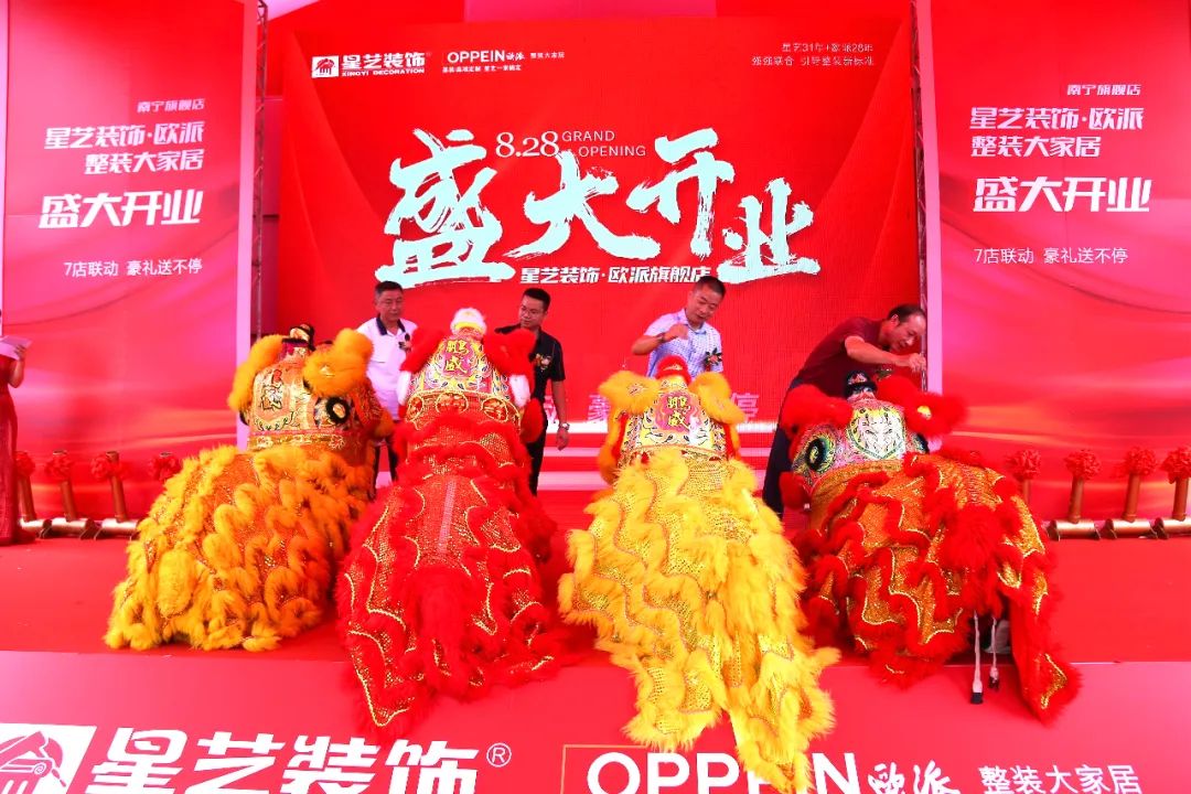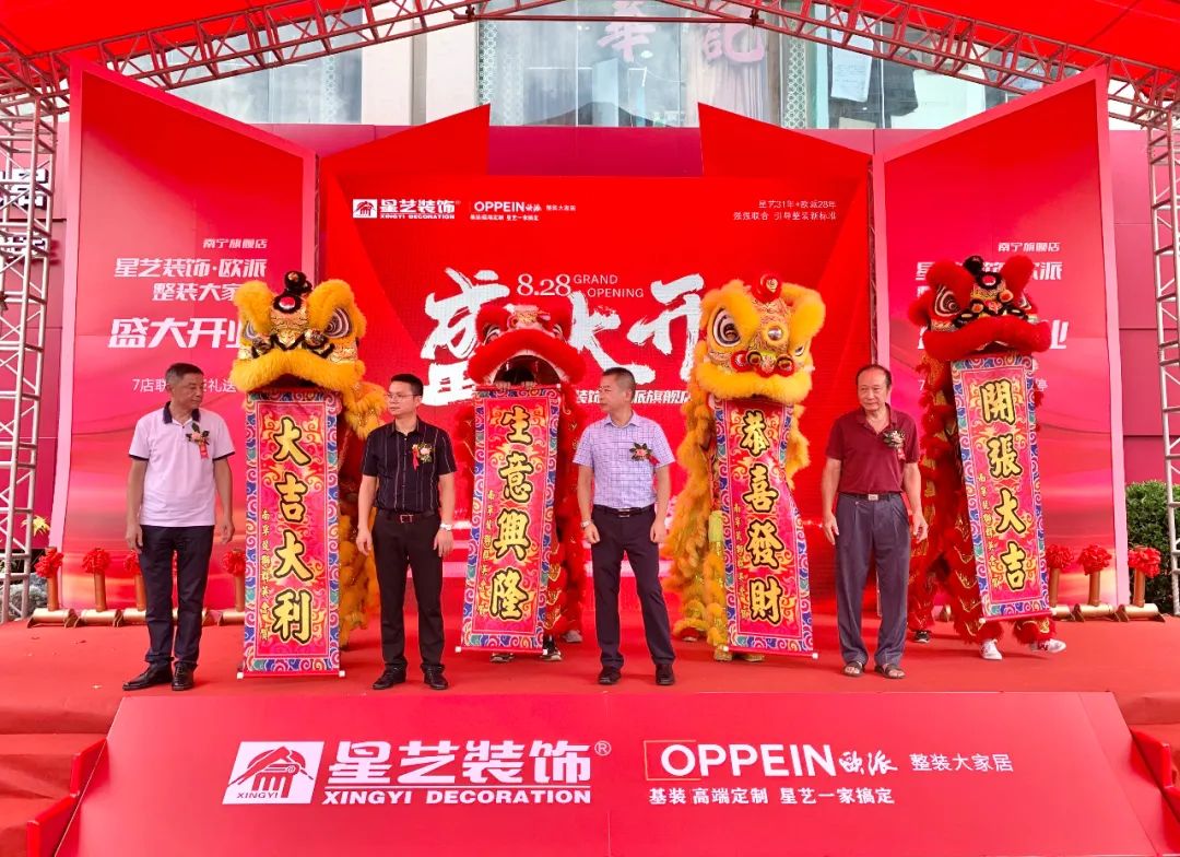 在現(xiàn)場(chǎng)熱火朝天的氛圍下,開業(yè)慶典進(jìn)入“醒獅點(diǎn)睛”環(huán)節(jié),由廣西裝飾協(xié)會(huì)秘書長兼家裝委員會(huì)輪值會(huì)長譚謙譚會(huì)長、星藝客戶代表唐老師、歐派整裝經(jīng)銷二部總監(jiān)黃亮亮、星藝南寧區(qū)域總經(jīng)理周平生為醒獅點(diǎn)睛,寓意虎虎生威,事業(yè)興旺,宏圖大展,再創(chuàng)輝煌。