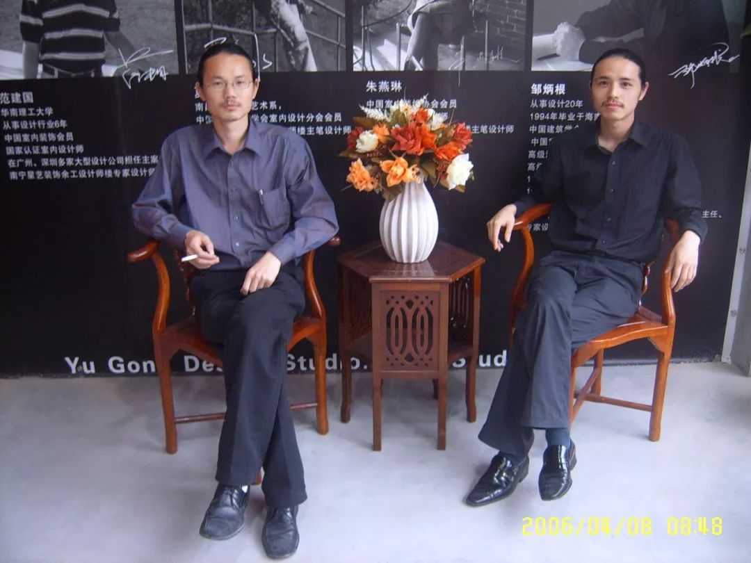 ▲2006年余工樓創(chuàng)建,設(shè)計(jì)總監(jiān)李明(左)與設(shè)計(jì)總監(jiān)王時(shí)雨(右)