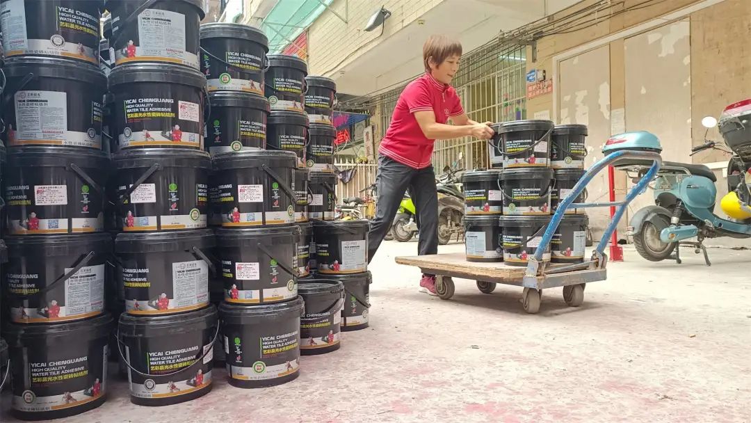 倉庫主要儲存水電材料、乳膠漆、膩?zhàn)臃?、瓷磚膠、裝修輔料等。瓷磚等裝修主材則直接從廠家配送到工地,不經(jīng)過這里。在倉庫門口,不時(shí)有車輛???,裝運(yùn)即將配送到工地的相關(guān)材料。倉庫貨單柜上一格一格地標(biāo)注著項(xiàng)目經(jīng)理的名字,而格子里,則是他們所管工地的材料出貨單,密密麻麻。