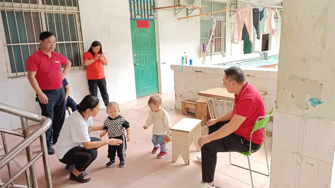 上午9時(shí)許,食堂內(nèi)就已經(jīng)很忙碌,各種備菜擺滿柜臺,10時(shí)50分前就要出餐。臨近中午,二樓以上的煙火味漸濃。走廊上,星藝家人趁著日光尚好,在護(hù)欄上曬白菜,即將腌酸做成美味;廚房里,一名星藝員工家屬正在炒菜,魚味辣香頗有老家江西味道;公寓拐角的休閑區(qū),身著工服的星藝人與剛學(xué)會走路的孩子逗趣,教“星二代”如何敬禮。