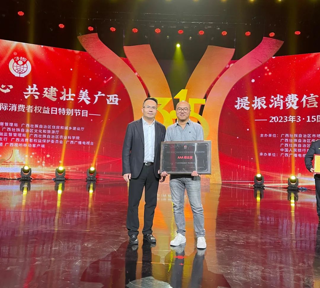 3月14日,在廣西壯族自治區(qū)市場(chǎng)監(jiān)督管理局、廣西壯族自治區(qū)住房和城鄉(xiāng)建設(shè)廳、廣西壯族自治區(qū)商務(wù)廳等相關(guān)部門聯(lián)合主辦,廣西廣播電視臺(tái)新聞?lì)l道、廣西視聽移動(dòng)客戶端承辦的“提振消費(fèi)信心 共建壯美廣西2023年3.15國(guó)際消費(fèi)者權(quán)益日特別節(jié)目上正式為星藝廣西頒發(fā)裝企信用評(píng)價(jià)AAA級(jí)企業(yè)榮譽(yù)牌匾,權(quán)威認(rèn)證,行業(yè)認(rèn)可,品牌魅力再次彰顯。