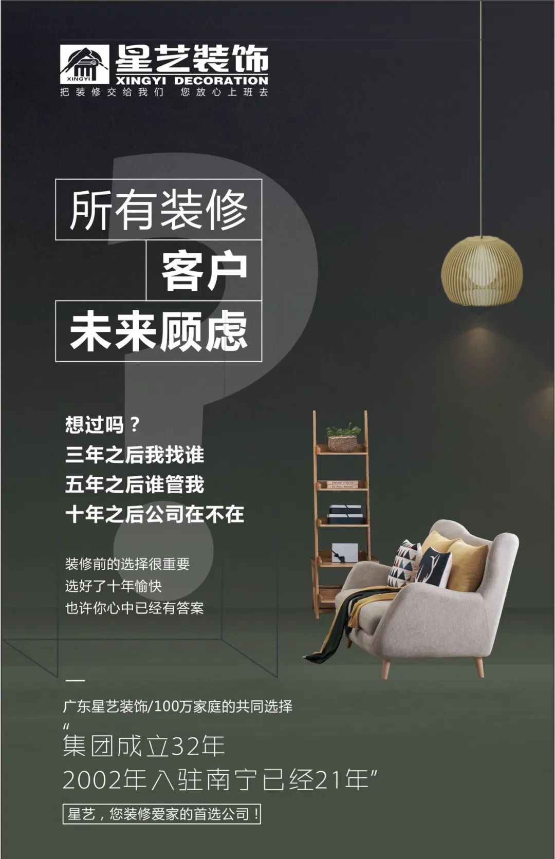 歷經(jīng)二十天的回訪與服務(wù),許多新老客戶真切感受到星藝裝飾令人感動(dòng)的售后保障,2002年入邕,始終秉持“客戶至上“的經(jīng)營(yíng)理念,為廣大客戶朋友帶來(lái)有品質(zhì)、有保障的家裝設(shè)計(jì),深耕邕城21年,熱忱服務(wù)21年,選擇星藝裝飾,選擇品質(zhì)家裝好服務(wù)。