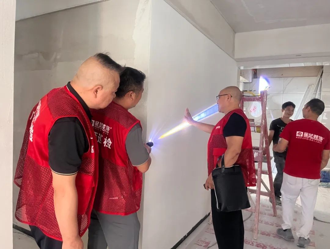 在檢查過程中,經(jīng)驗(yàn)豐富的余工、吳工以及易經(jīng)理等一行人嚴(yán)格按照公司工程規(guī)范管理制度在工地上進(jìn)行巡查,從墻面的平整度、用材的品質(zhì)到施工的工藝,幾位巡檢員現(xiàn)場溝通交流,上手檢查,連測帶量,精細(xì)到每一處細(xì)節(jié),力求保質(zhì)保量,為業(yè)主打造一個(gè)安全可靠的品質(zhì)新家。