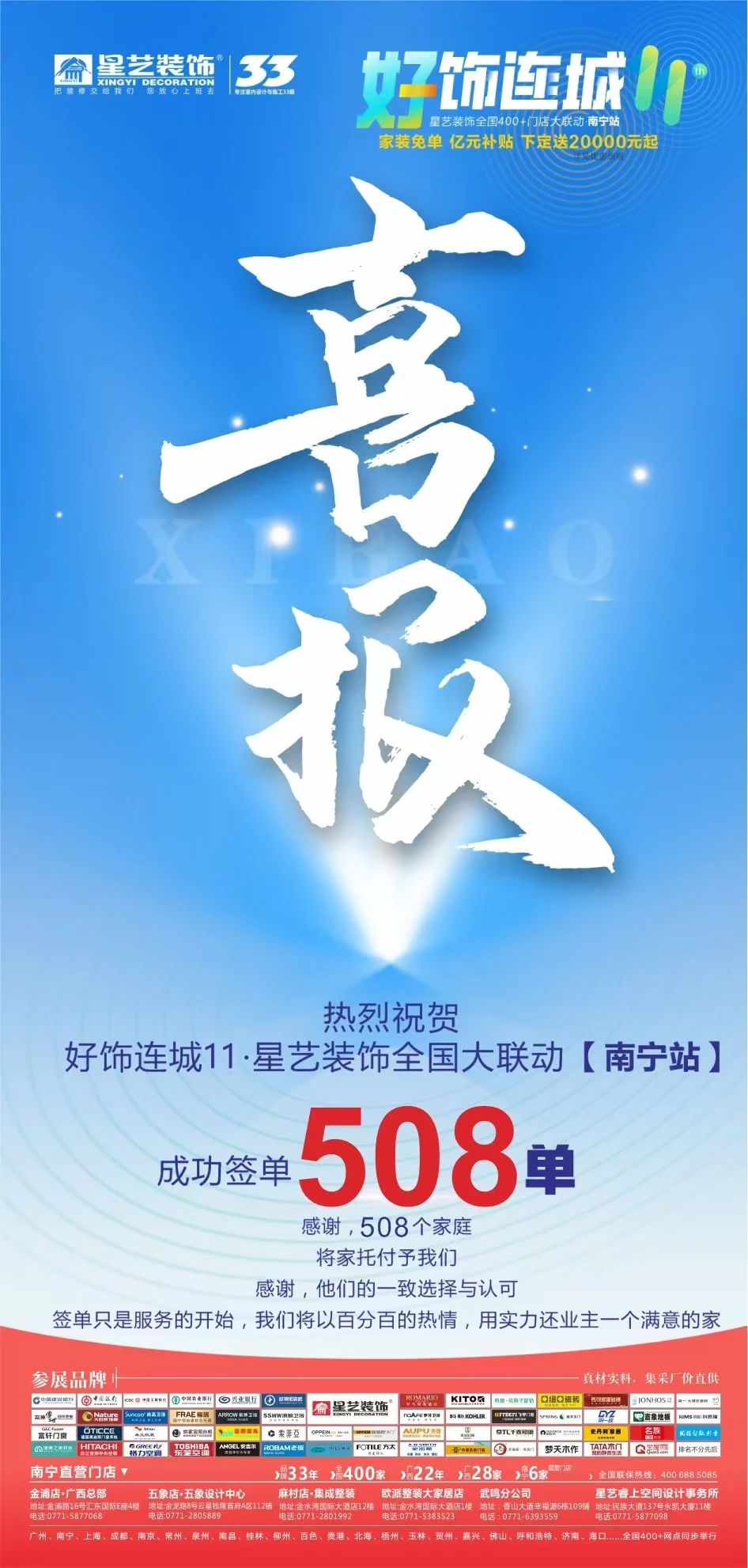 “簽單只是開始,品質(zhì)交付和服務(wù)更為重要!”感謝508位業(yè)主的選擇和信賴,感謝國家的惠民補貼政策支持,感恩“為愛筑巢、為幸福與筑家”的星藝?家人!33年品牌、入邕22年,品牌實力、設(shè)計實力、交付實力讓客戶選擇和信賴,感謝一路有你們,感恩攜手同行,讓我們共赴美好未來。