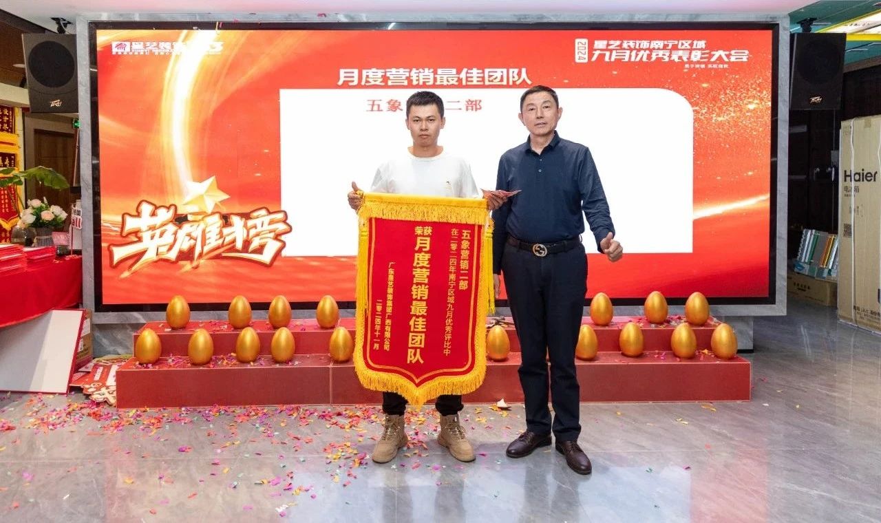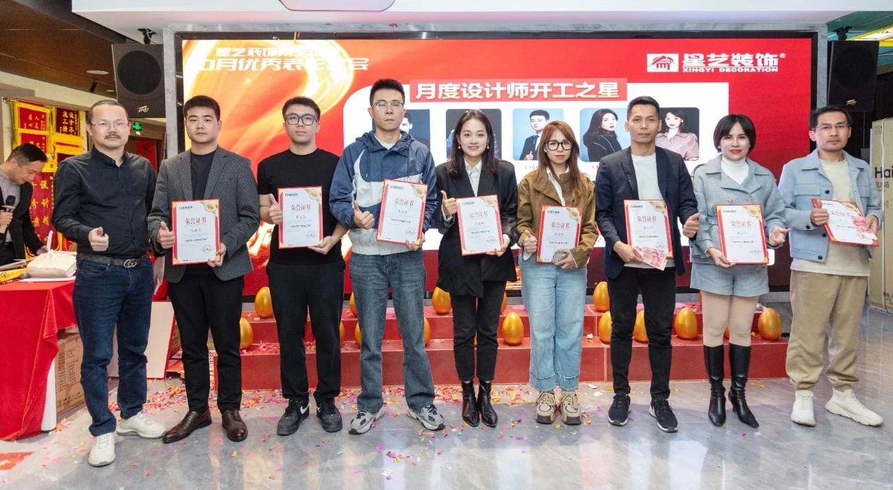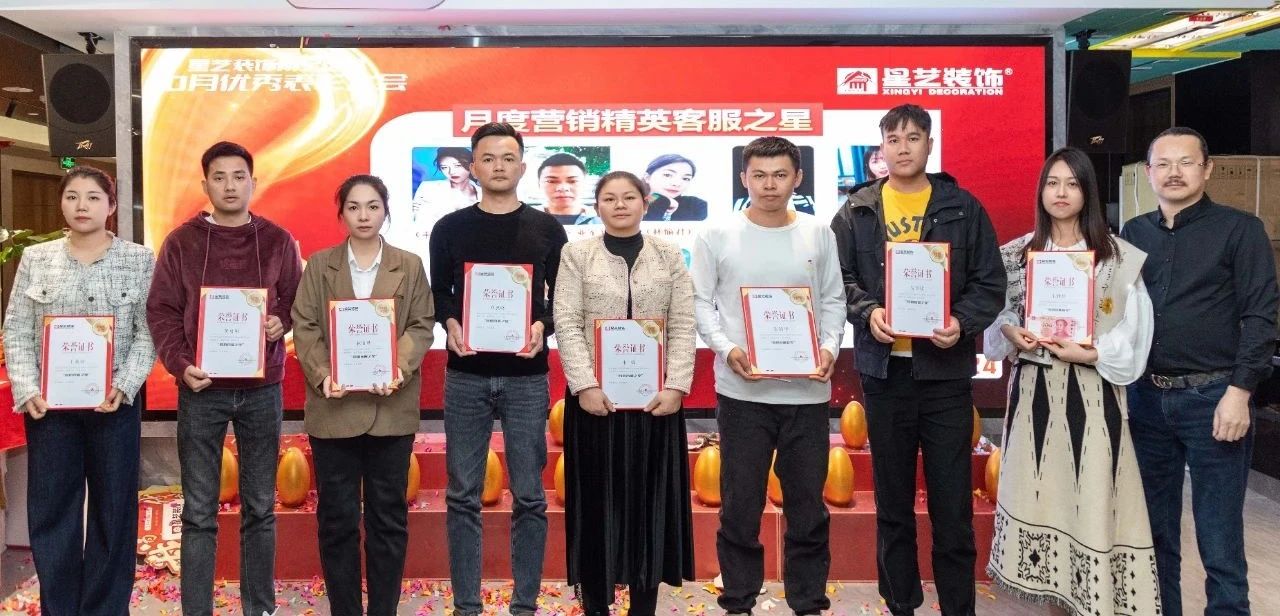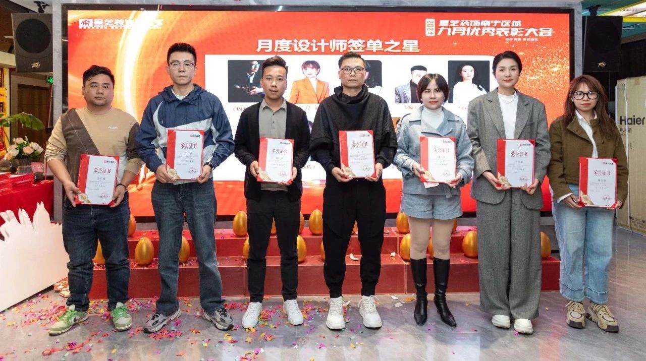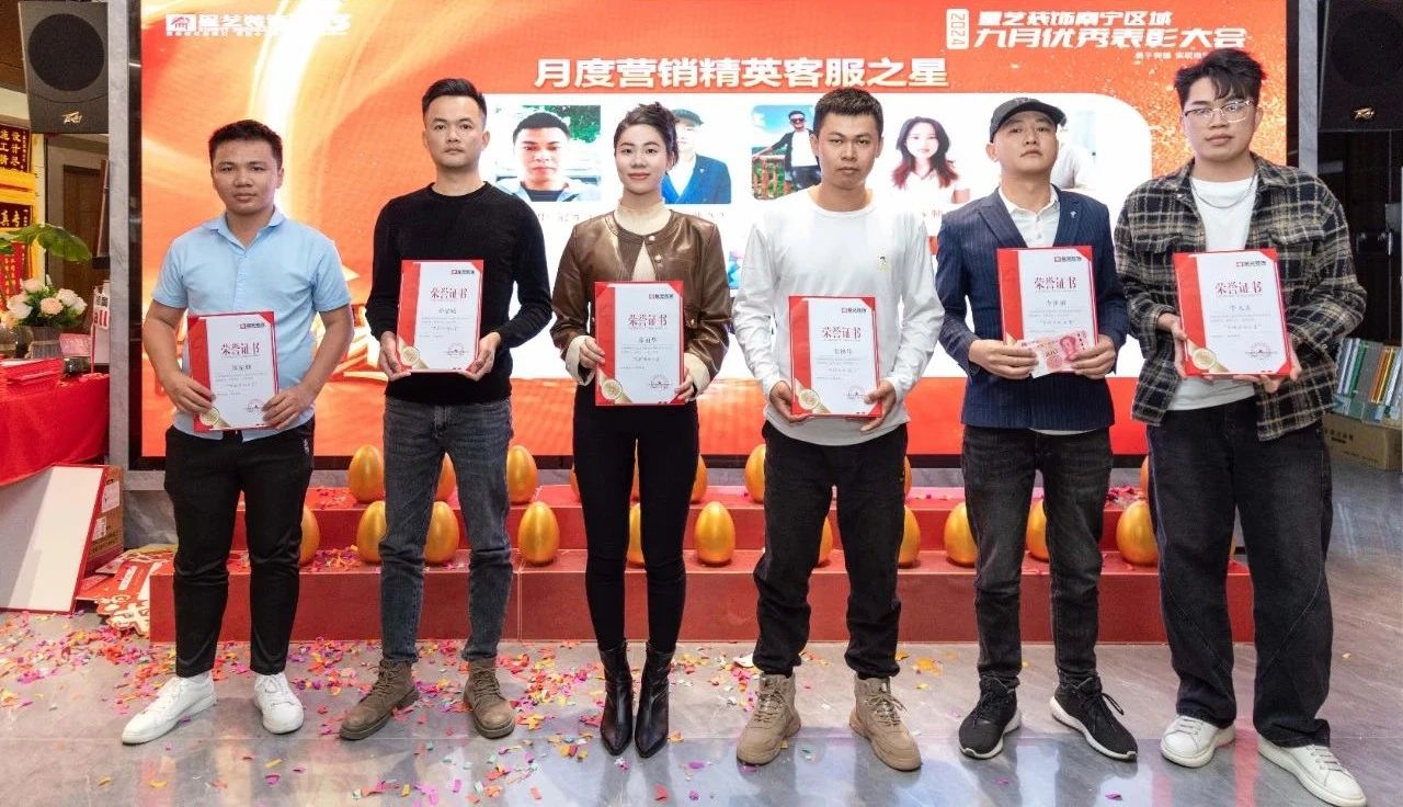 會議開始,星藝南寧區(qū)域總經(jīng)理周平生、星藝南寧區(qū)域設計總監(jiān)李明以及星藝南寧區(qū)域副總經(jīng)理胡四民率先為9月份、10月份表現(xiàn)優(yōu)異的星藝團隊及家人頒發(fā)月度獎勵以及證書,并號召現(xiàn)場星藝家人向優(yōu)秀看齊。