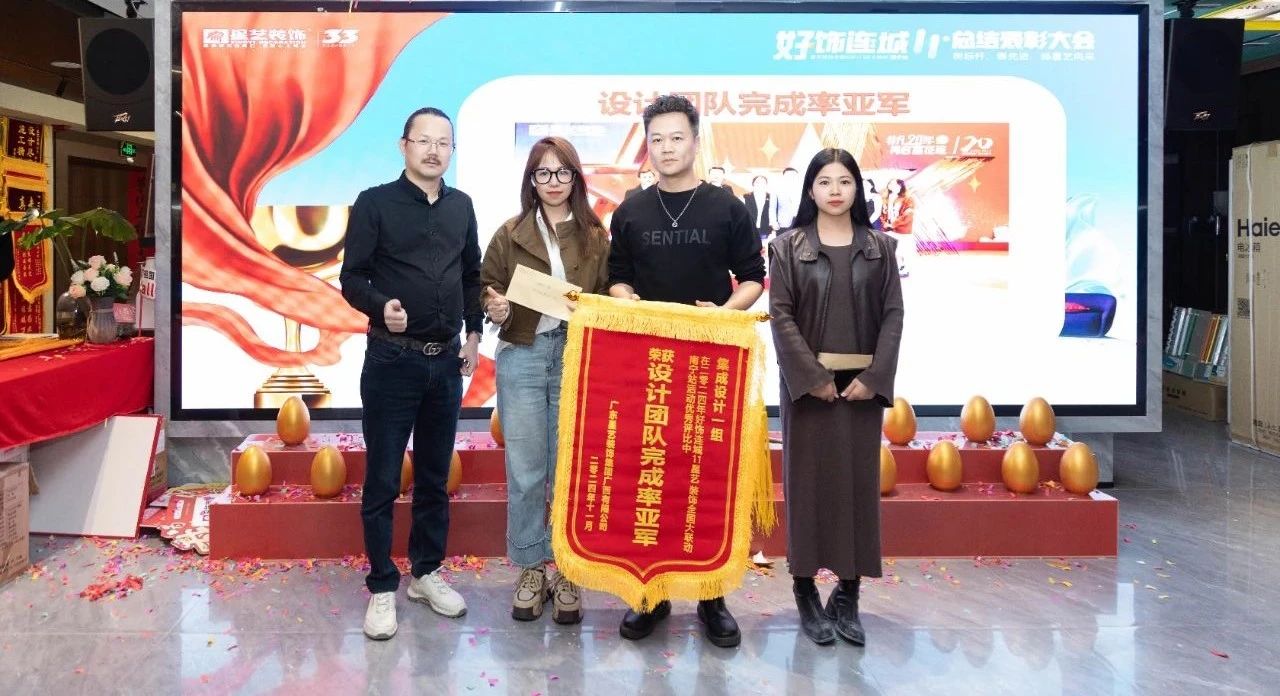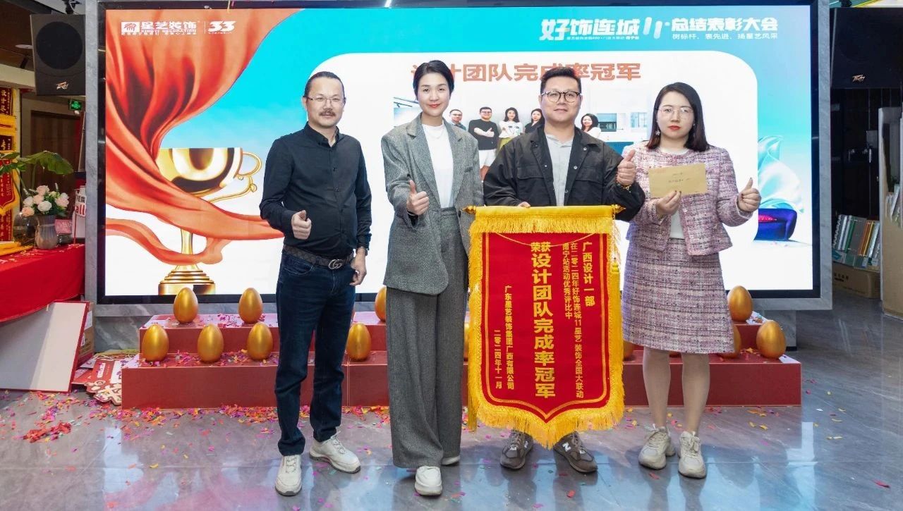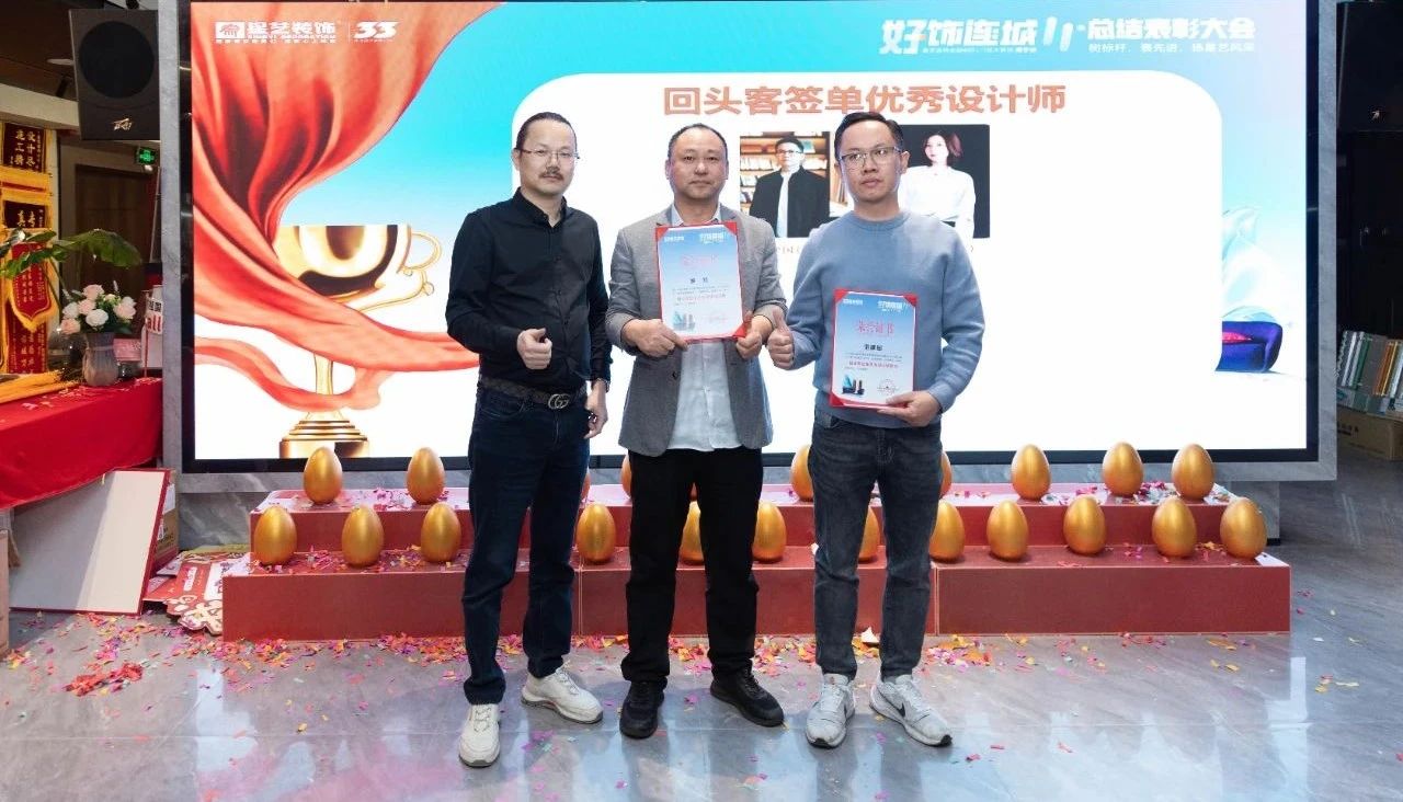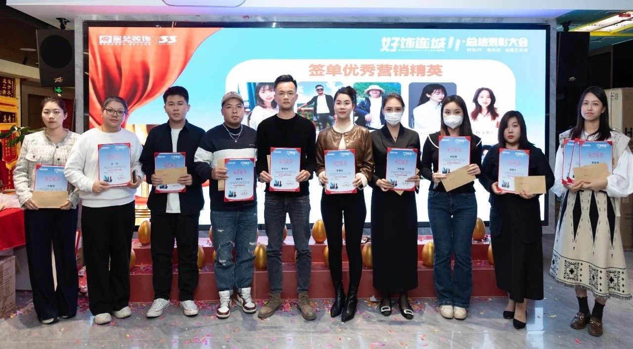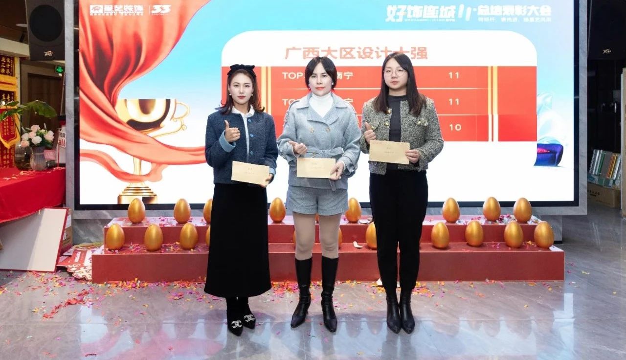 緊接著,大會進入“好飾連城11(南寧站)”總結表彰環(huán)節(jié),在此次活動中,經(jīng)過星藝家人們的共同努力,創(chuàng)下獲508戶業(yè)主選擇的歷史佳績新高,再度彰顯星藝裝飾創(chuàng)立33年的品牌魅力;其中涌現(xiàn)出了許多優(yōu)秀的團隊及個人,他們齊心奮進,勇創(chuàng)佳績,為其他星藝家人樹立標桿,樹立“星”榜樣;會議現(xiàn)場,周總、李工、胡總也分別為其頒發(fā)活動獎勵及證書。