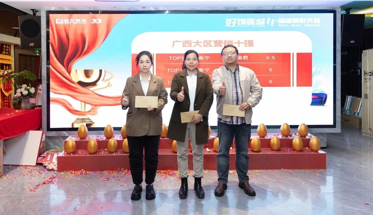 11月29日,星藝南寧9月份、10月份、“好飾連城11(南寧站)”總結表彰暨2024年跨年活動啟動大會在集成整裝館會議室隆重召開,星藝南寧三百多位家人齊聚一堂,總結活動優(yōu)缺點,表彰優(yōu)秀團隊及個人,為后續(xù)更好服務客戶樹立標桿。會議由星藝南寧區(qū)域副總經(jīng)理胡四民主持。