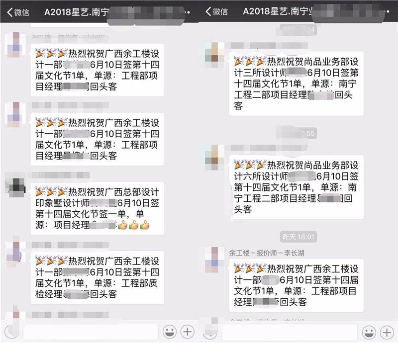 (6月10日當(dāng)天工程部項(xiàng)目經(jīng)理回頭客部分截圖)