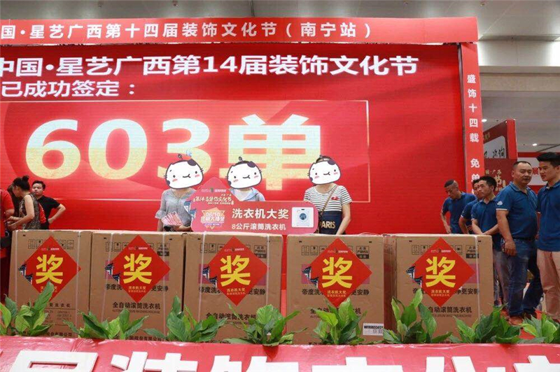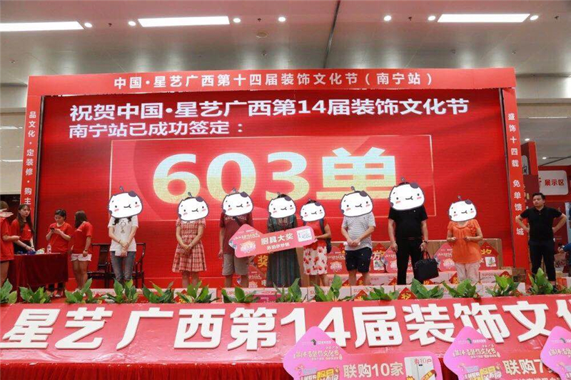 6月10日,星藝裝飾第十四屆裝飾文化節(jié)(南寧站)在會(huì)展中心圓滿落下帷幕,在廣大客戶和五十一家一線品牌聯(lián)盟建材商家、中行、建行、工行、民生銀行以及500多名星藝家人的努力下,本次活動(dòng)成功取得603單的佳績(jī),怒刷2017年第十三屆文化節(jié)的記錄,達(dá)到新的高度,碩果累累,收獲滿滿。