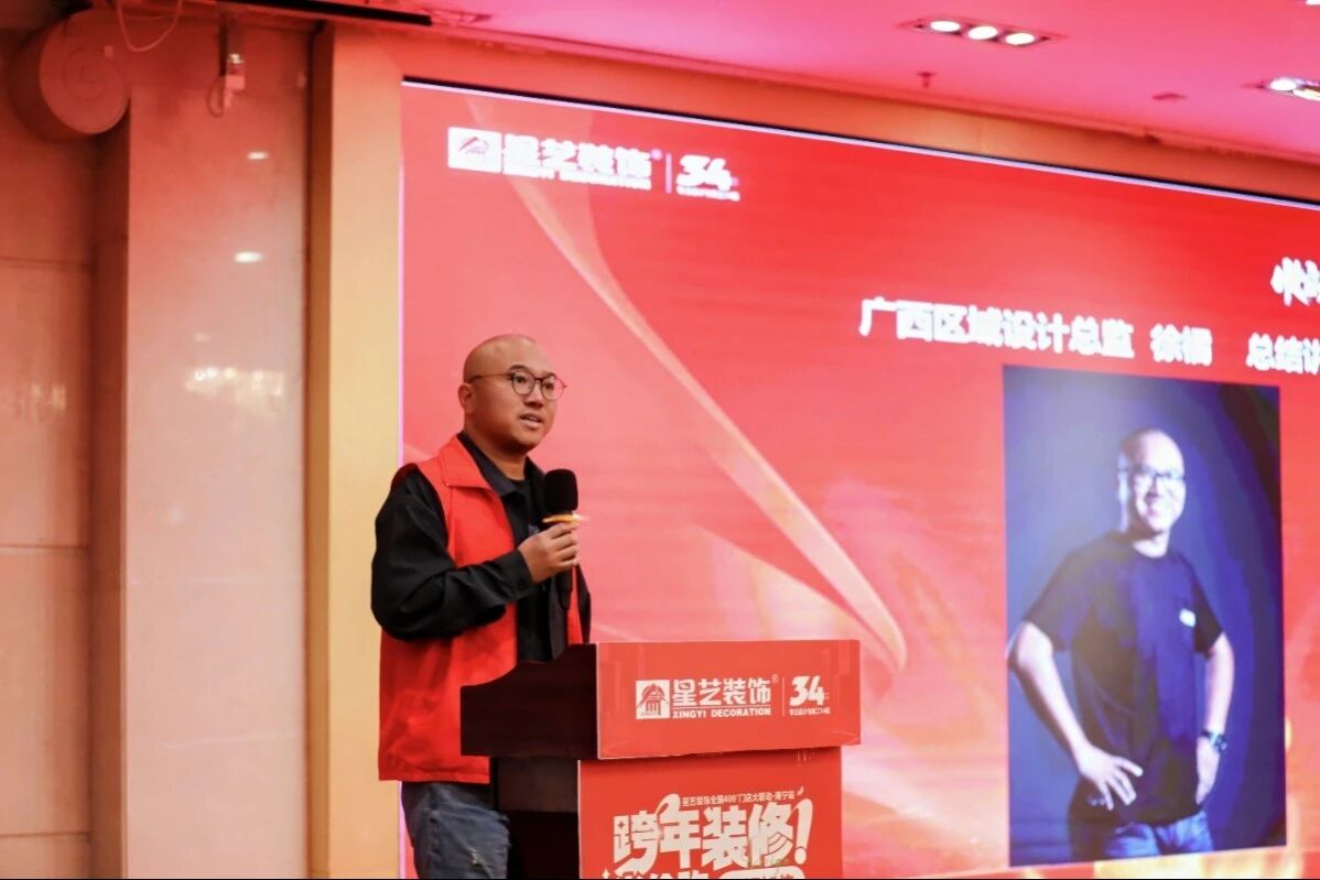 星藝廣西設(shè)計總監(jiān)徐橘、星藝南寧區(qū)域總經(jīng)理周平生、星藝南寧區(qū)域設(shè)計總監(jiān)李明、星藝南寧區(qū)域副總經(jīng)理胡四民以及星藝南寧七大直營門店、南寧工程部經(jīng)理、設(shè)計師、營銷員等三百多位星藝南寧家人共聚一堂,就“總結(jié)好飾連城12(南寧站)、表彰優(yōu)秀團(tuán)隊及個人、學(xué)習(xí)、啟動跨年裝修活動”等幾大議題開展總結(jié)表彰。